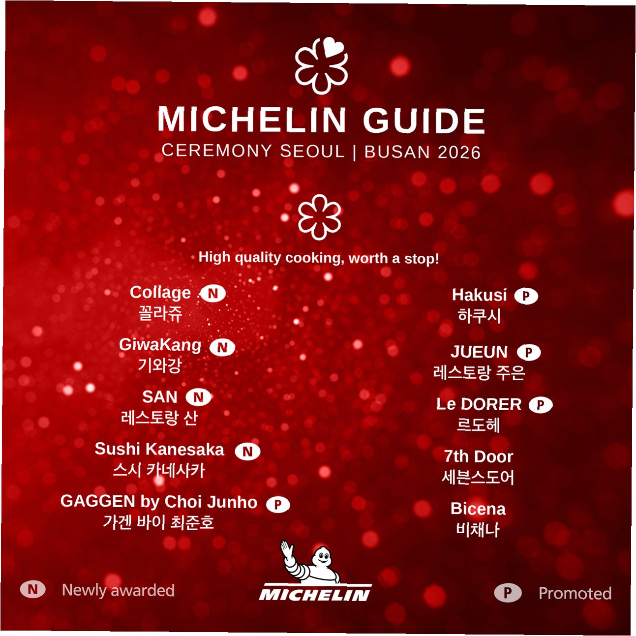 미쉐린 가이드 2026, 별들의 전쟁 결과 발표올해도 어김없이 미쉐린 가이드의 별들이 국내 레스토랑들을 수놓았습니다. 올해 '미쉐린 가이드 서울·부산 2026' 선정 결과, 총 46곳의 레스토랑이 이름을 올렸습니다. 최고 등급인 3스타의 영광은 강민구 셰프의 '밍글스'가 굳건히 지켰으며, 한국 전통의 미학을 현대적으로 재해석한 요리로 깊은 인상을 남겼습니다. 2스타 레스토랑은 10곳이 선정되었으며, 특히 안성재 셰프의 '모수'가 재개장 후 2스타로 화려하게 복귀하여 주목받고 있습니다. 손종원 셰프의 '이타닉 가든'과 '라망 시크레'는 1스타를 유지하며 꾸준한 사랑을 입증했습니다. 모수, 2스타 복귀의 드라마안성재 셰프의 '모수'는 이번 미쉐린 가이드에서 2스타를 획득하며 다시 한번 정상급 레스토랑임..