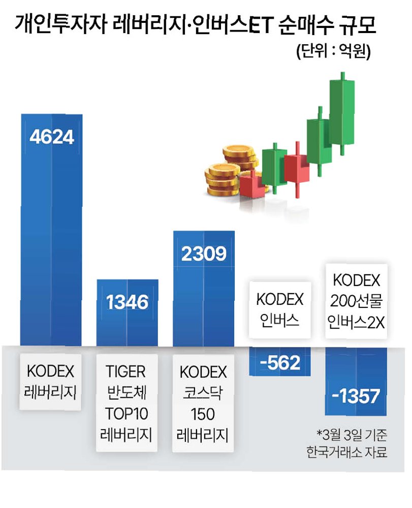 글로벌 증시 변동성 속 한국 개인 투자자들의 레버리지 ETF 열풍중동 사태로 인한 글로벌 증시 변동성 확대 속에서 한국 개인 투자자들이 미국 증시에 상장된 한국 주식 추종 레버리지 ETF에 대거 몰리고 있다는 외신 보도가 이어지고 있습니다. 블룸버그통신은 이러한 현상을 '중독에 가까운 수준'이라고 평가하며, 올해 들어 3월 6일까지 한국 주식 추종 ETF로 유입된 자금이 215억 달러(약 29조 원)에 달한다고 보도했습니다. 이는 이전 3개월 대비 두 배 가까이 증가한 수치로, 분기 기준 사상 최대 기록이 될 가능성이 높습니다. 특히 이 중 약 20%가 레버리지 상품으로, 과거보다 그 비중이 크게 늘어난 점이 주목됩니다. ‘KORU’ ETF, 한국 데이트레이더들의 '중독적인 취미'로 자리 잡아외신이..