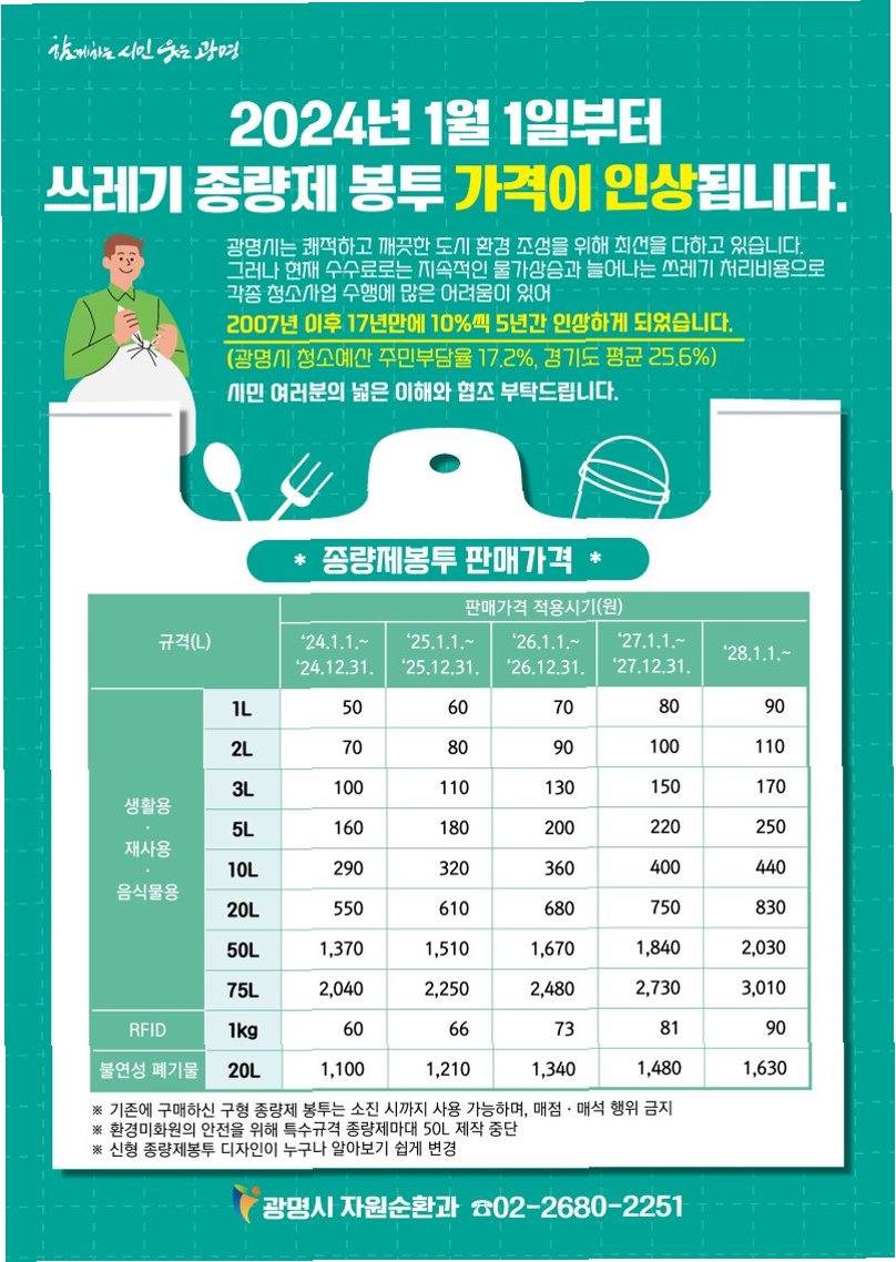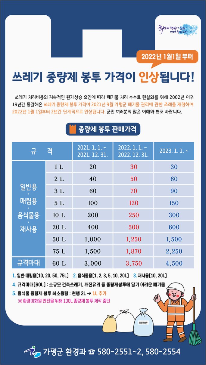 종량제봉투 가격, 예정대로 인하 확정!