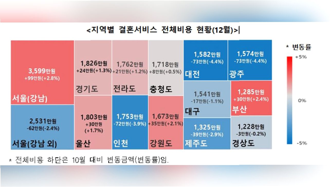 결혼식 비용, 지역별 격차 최대 3배 '양극화' 심화
