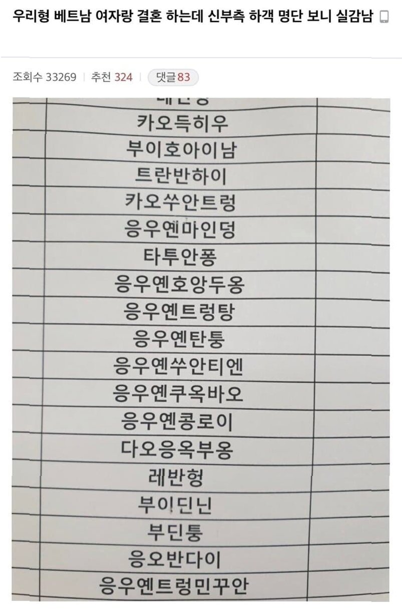 결혼식 하객 명단 정리의 어려움