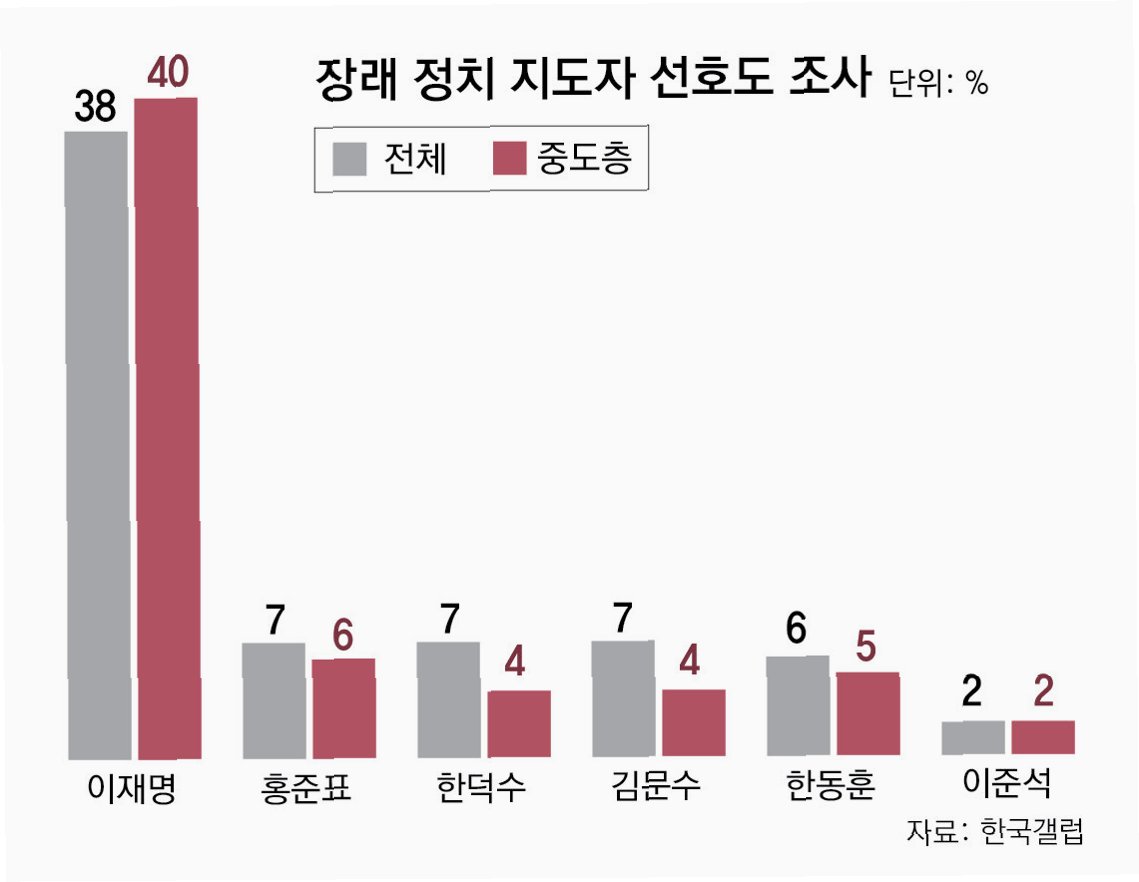 중도층의 반응과 지지율 차이