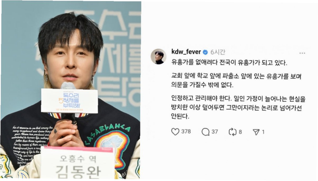 그룹 신화 멤버 김동완이 성매매 합법화 및 관리의 필요성을 언급하며 온라인상에서 뜨거운 논쟁을 불러일으켰습니다. 그는 '유흥가를 없애려다 전국이 유흥가가 되고 있다', '인정하고 관리해야 한다'는 취지의 의견을 SNS에 게재했습니다. 특히 1인 가구 증가 등 현실을 방치해서는 안 된다는 점을 강조하며, 질병 관리 차원에서도 합법화가 필요하다는 입장을 밝혔습니다. 이러한 발언은 팬들 사이에서 부정적인 반응을 얻었고, 해당 SNS 계정은 폐쇄되었습니다.