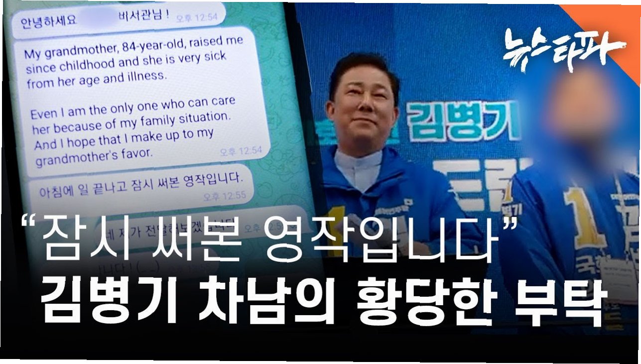 더불어민주당 김병기 의원의 차남이 자신의 미국 대학 휴학 연장 신청과 간단한 영작문 첨삭까지 김 의원의 보좌진에게 부탁했던 사실이 뉴스타파 취재 결과 확인됐다. 김 의원 가족의 사적인 업무에 공무원인 보좌 직원이 동원된 추가 정황이다. 김 의원의 차남은 이른바 '숭실대 편입 및 중소기업 특혜 의혹'의 당사자다.