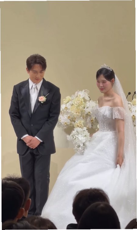 깔끔한 턱시도 차림의 김원훈은 "저는 전생에 나라를 구하지 못해서 엄지윤을 만났다"라고 말해 웃음을 자아냈습니다. 이에 순백의 웨딩드레스를 입은 엄지윤은 "저는 전생에 나라를 팔았다. 그래서 김원훈을 만났다"고 재치 있게 받아치며 하객들에게 큰 웃음을 선사했습니다. 두 사람은 "저희 두 사람은 서로를 평생의 동반자로 맞이하며 사랑과 책임을 다할 것을 약속드린다"고 진심을 담아 서약했습니다.