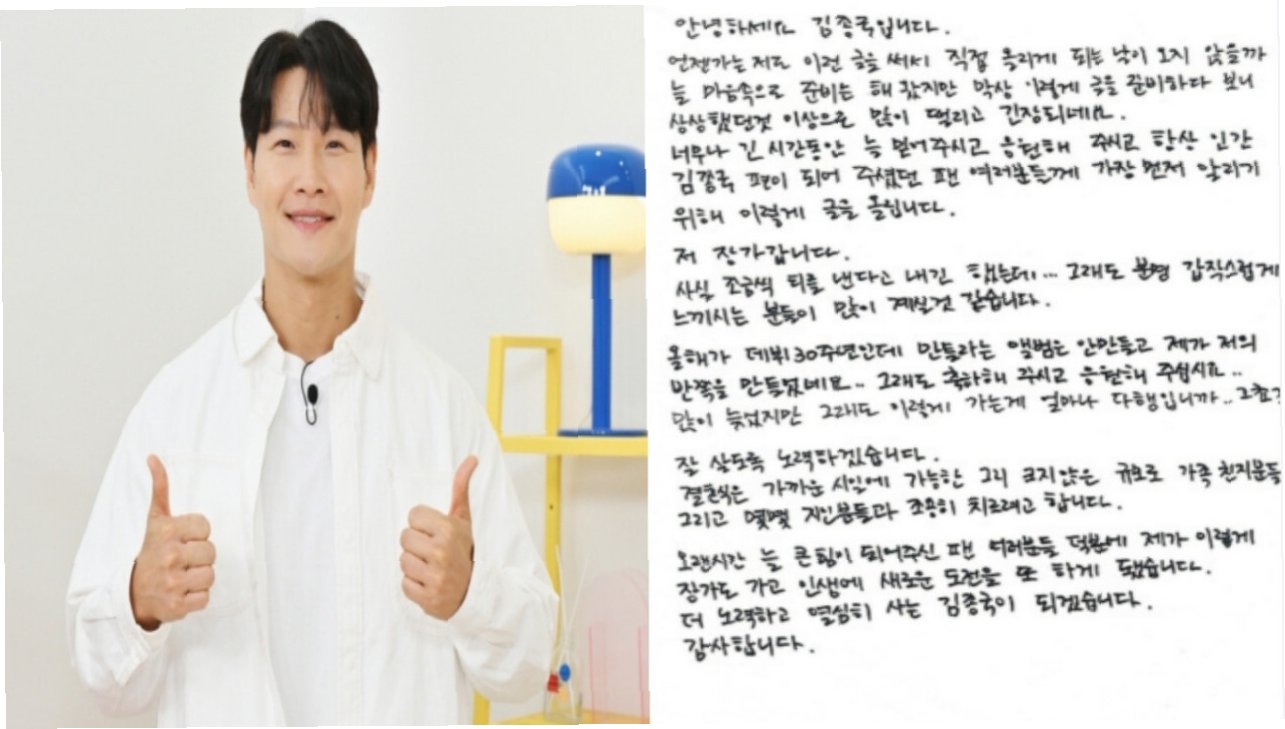 김종국, '런닝맨'에서 결혼 발표… 팬카페에 손편지로 직접 알려