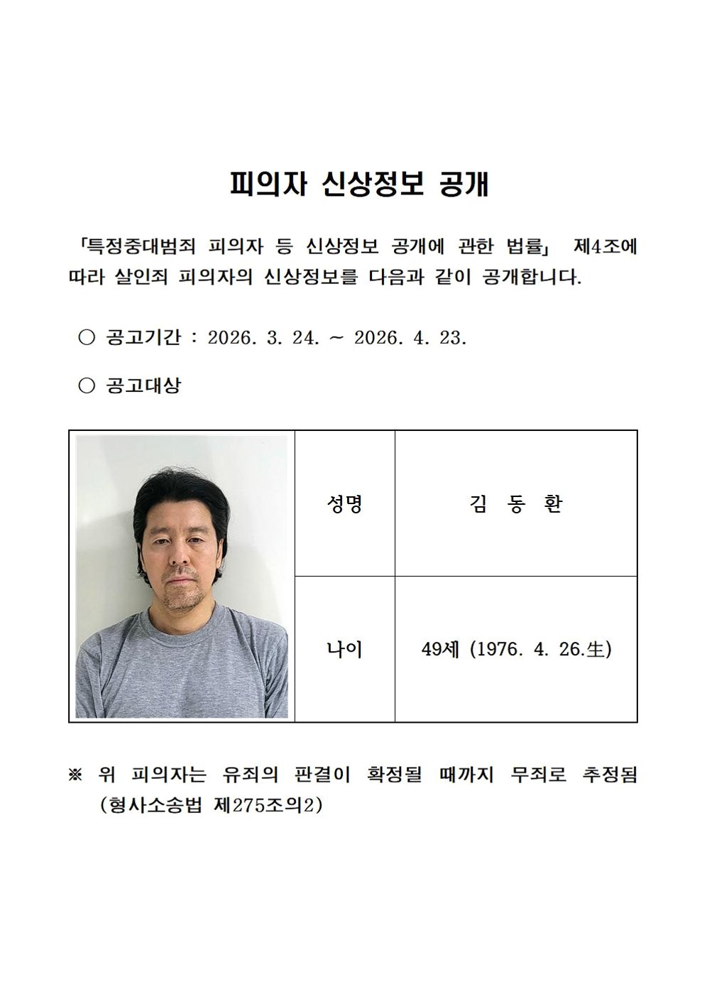동료 기장 살해범, 49세 김동환 신상 공개 결정