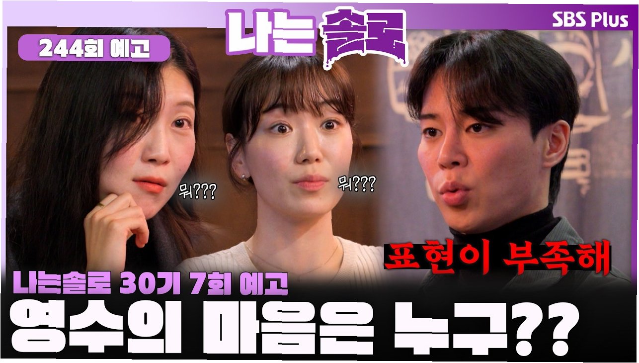 A.ENA·SBS PLUS '나는솔로' 공식 유튜브 채널 '촌장엔터테인먼트TV'에서 '※미방분※ 30기_영식&영자 데이트 풀버전'이라는 제목으로 공개되었습니다.