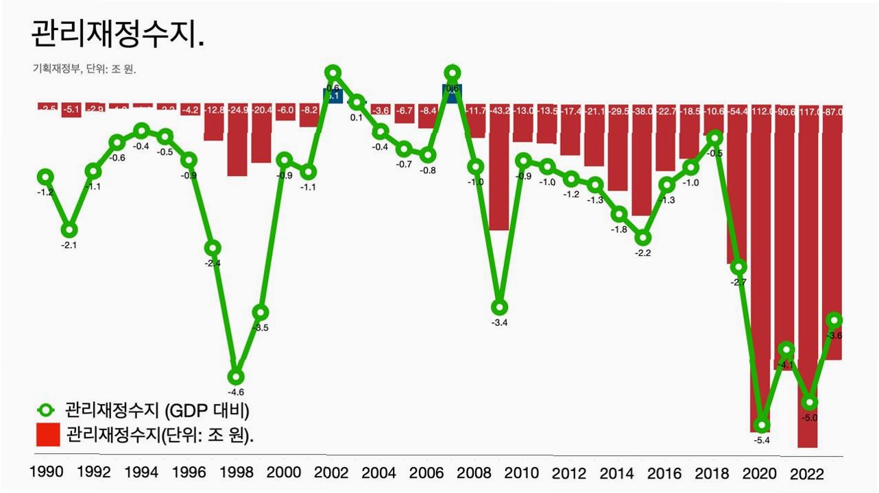 기획예산처 발표에 따르면, 실질적인 재정 상태를 보여주는 관리재정수지가 11월 말 기준 89조 6천억 원 적자로 집계되었습니다이는 2020년과 2022년에 이어 세 번째로 큰 적자 규모이며, 지난해 같은 기간과 비교하면 적자 폭이 8조 3천억 원이나 확대된 것입니다. 이러한 수치는 정부의 재정 운용에 적신호가 켜졌음을 의미하며, 경제 전반에 걸쳐 부정적인 영향을 미칠 수 있습니다. 우리는 이러한 상황을 정확히 인지하고, 문제 해결을 위한 적극적인 자세를 가져야 합니다.