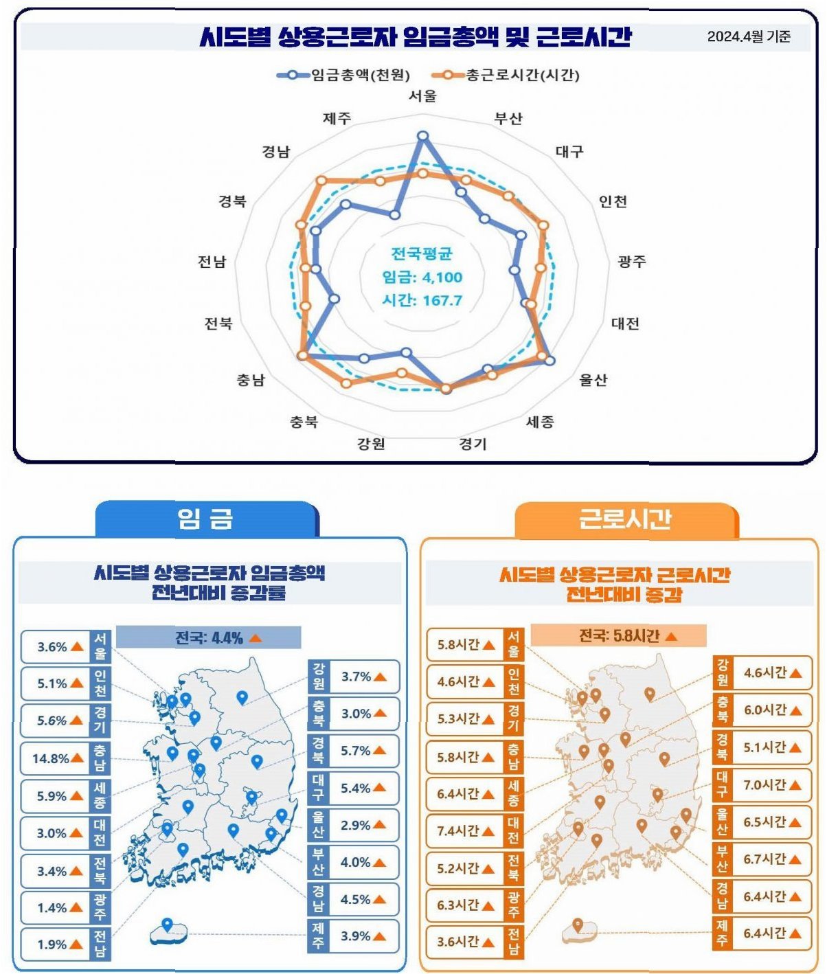 1인당 근로 시간은 평균 174.2시간이었습니다. 충남과 경남은 평균보다 근로 시간이 길었고, 제주는 근로 시간이 짧았습니다. 충남과 경남은 제조업 비중이 높아 근로 시간이 긴 편이며, 제주는 서비스업 비중이 높아 근로 시간이 짧은 경향을 보입니다. 근로 시간은 단순히 노동의 양을 나타내는 지표일 뿐만 아니라, 각 지역의 산업 구조와 노동 환경을 반영하는 중요한 지표입니다.