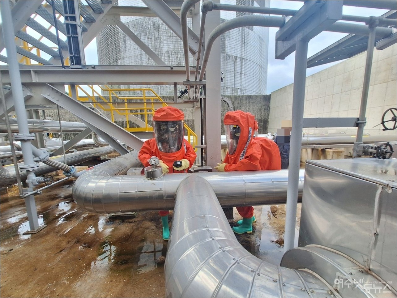 A.냉매 보관 탱크의 밸브를 교체하는 작업 중 암모니아 가스가 누출된 것으로 파악되었습니다.