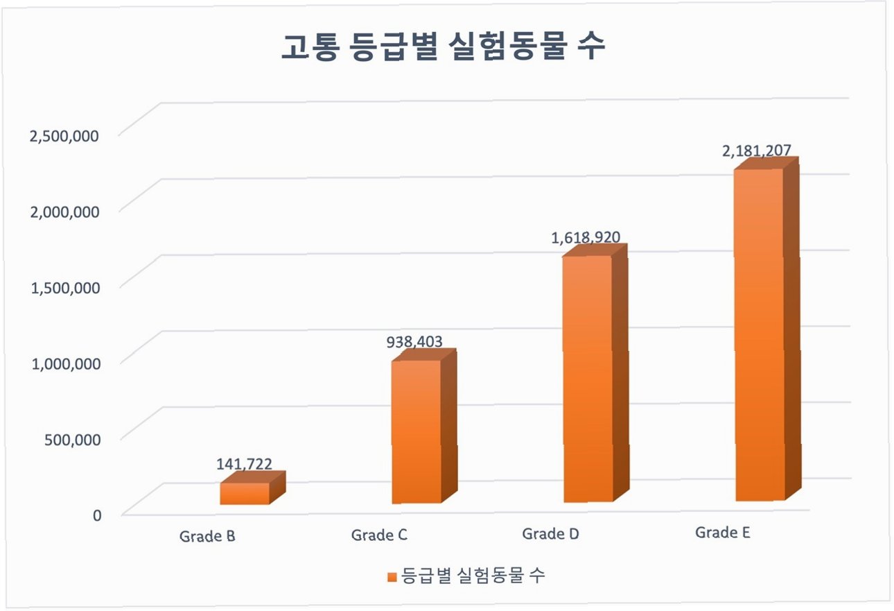 한국의 동물실험은 더욱 잔혹해지는 추세입니다. 농림축산검역본부의 보고서에 따르면, 지난해 국내 동물실험 중 51.5%가 E등급, 즉 최고 고통 등급으로 분류되었습니다. 이는 2015년 30%에 불과했던 것에 비해 급증한 수치입니다. 이러한 결과는 230만 마리에 달하는 동물이 극심한 고통을 겪었다는 것을 의미합니다. 반면, 고통이 없는 B등급 실험은 4.5%로 미미한 수준에 그쳤습니다. 이러한 현실은 미국, 유럽 등 주요 선진국과 비교했을 때 더욱 두드러지며, 한국 동물실험의 윤리적 기준이 얼마나 낮은지를 보여줍니다.