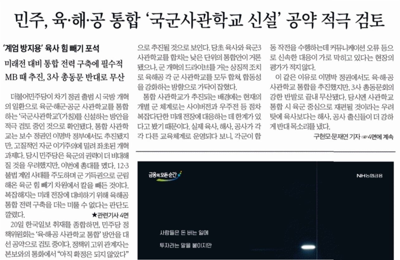 사관학교 통합, 왜 다시 주목받는가?