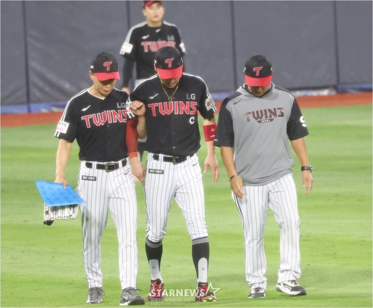 7-2로 앞선 8회말 2사 1, 2루에서 오윤석의 머리 위로 날아가는 큰 타구를 잡으려다 박해민은 발목을 접질렸습니다타구를 끝까지 쫓아갔지만, 결국 펜스 앞에 주저앉아 고통스러워했습니다트레이닝코치가 달려와 상태를 확인한 뒤 교체 신호를 보냈고, 박해민은 코치의 등에 업혀 더그아웃으로 향했습니다. 이 장면은 팬들에게 큰 충격을 안겨주었습니다.