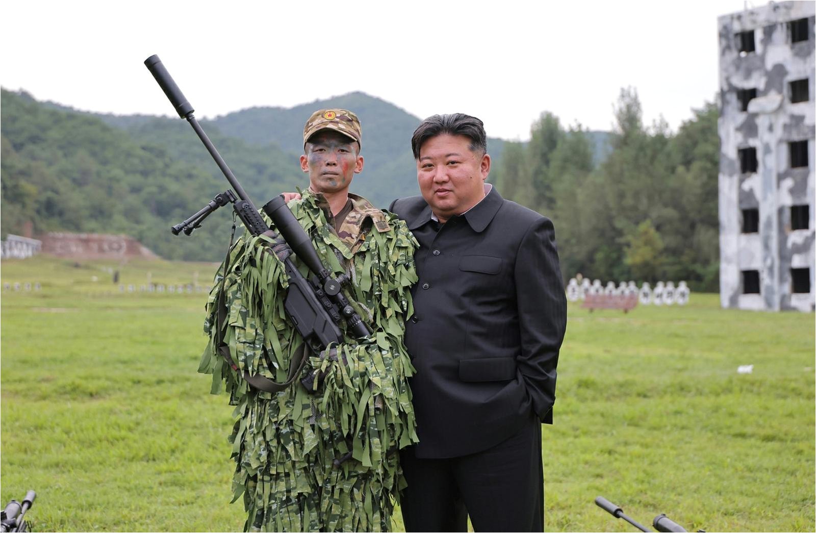 북한 노동당 기관지 노동신문은 28일 “경애하는 김정은동지께서 8월 27일 조선인민군 총참모부직속 특수작전 훈련기지를 방문하시고 저격수 구분대와 특수작전 구분대 훈련실태를 료해(파악)했다”고 보도했다. (평양 노동신문=뉴스1)이번에 북한이 공개한 스나이퍼 사진들은 독특하다. 실제 경호 작전을 수행하는 사진처럼 숨어 있는 모습을 촬영한 것도 아닌데다 최고권력자가 직접 그들의 훈련을 참관하고 기념사진까지 찍었기 때문이다.