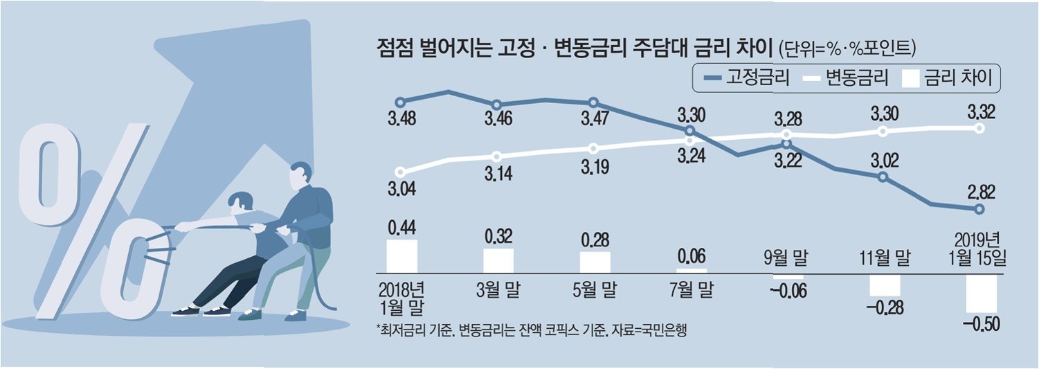 고정금리 비중 하락, '금리 변동성' 위험 노출