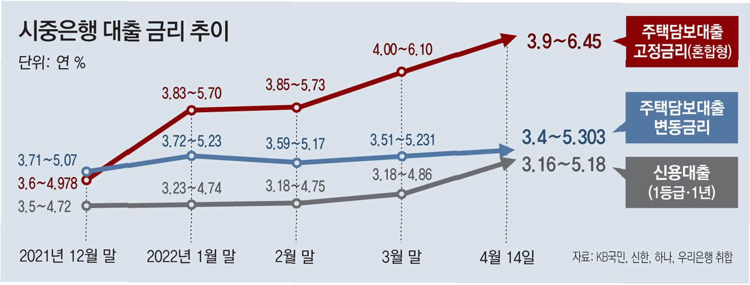 기업 대출 및 전체 은행권 대출 금리도 동반 상승