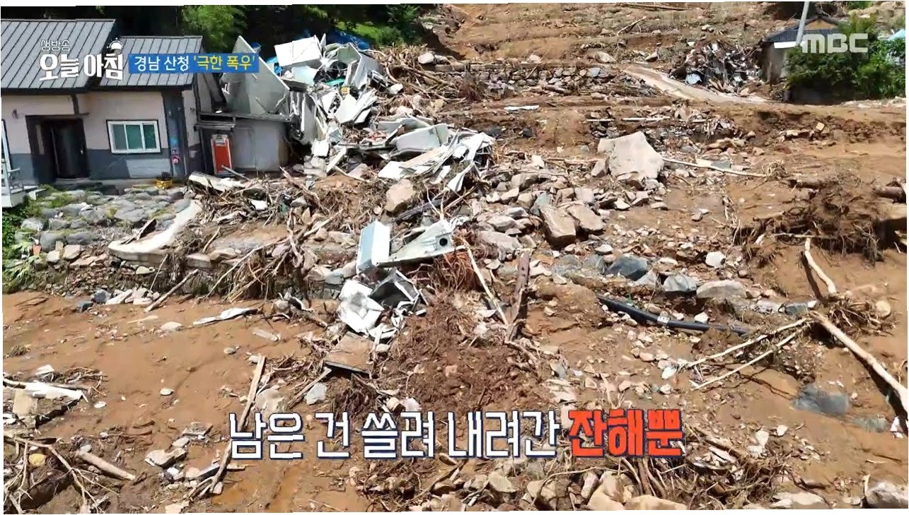 산청군 신등면의 한 주민은 가게 안에 가슴 높이까지, 창고에는 키 높이까지 물이 찼다고 전했습니다. 못 쓰게 된 물건들이 너무 많아 피해 규모를 가늠하기조차 어렵다고 합니다. 지금 물은 안 나옵니다. 동네가 완전히 고립되어 있어 도움의 손길이 절실한 상황입니다. 폭우와 폭염 속에서 주민들은 힘겨운 시간을 보내고 있으며, 하루빨리 일상으로 돌아가기를 간절히 바라고 있습니다.