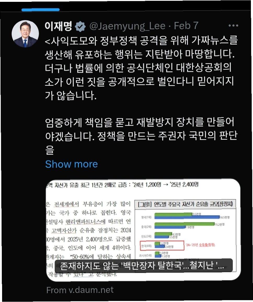 이재명 대통령의 '가짜 뉴스' 비판 이후, 대한상공회의소는 통계 검증 부족을 인정하며 공식 사과했습니다. 하지만 정부는 강경 대응에 나섰습니다. 임광현 국세청장은 최근 3년간 해외 이주자 전수 분석 결과를 공개하며, 10억 원 이상 자산 보유 인원의 해외 이주가 연평균 139명에 불과하다고 밝혀, 2천400명 유출설은 근거가 없다고 반박했습니다. 또한, 자산가들이 상속세가 없는 국가로 이주하는 경향도 발견되지 않았다고 덧붙였습니다.
