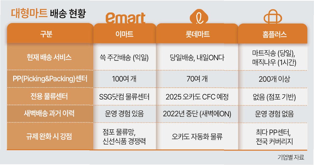 소상공인들의 반발에도 불구하고 정치권은 대형마트의 온라인 배송 허용에 속도를 내고 있습니다. 김동아 더불어민주당 의원이 대표 발의한 유통산업발전법 개정안은 대형마트의 온라인 배송 및 포장·반출을 허용하는 내용을 담고 있습니다. 천하람 개혁신당 원내대표는 더 나아가 의무휴업 폐지 개정안 발의까지 준비하며 자율경쟁 체제 구축과 소비자 선택권 확대를 주장하고 있습니다.