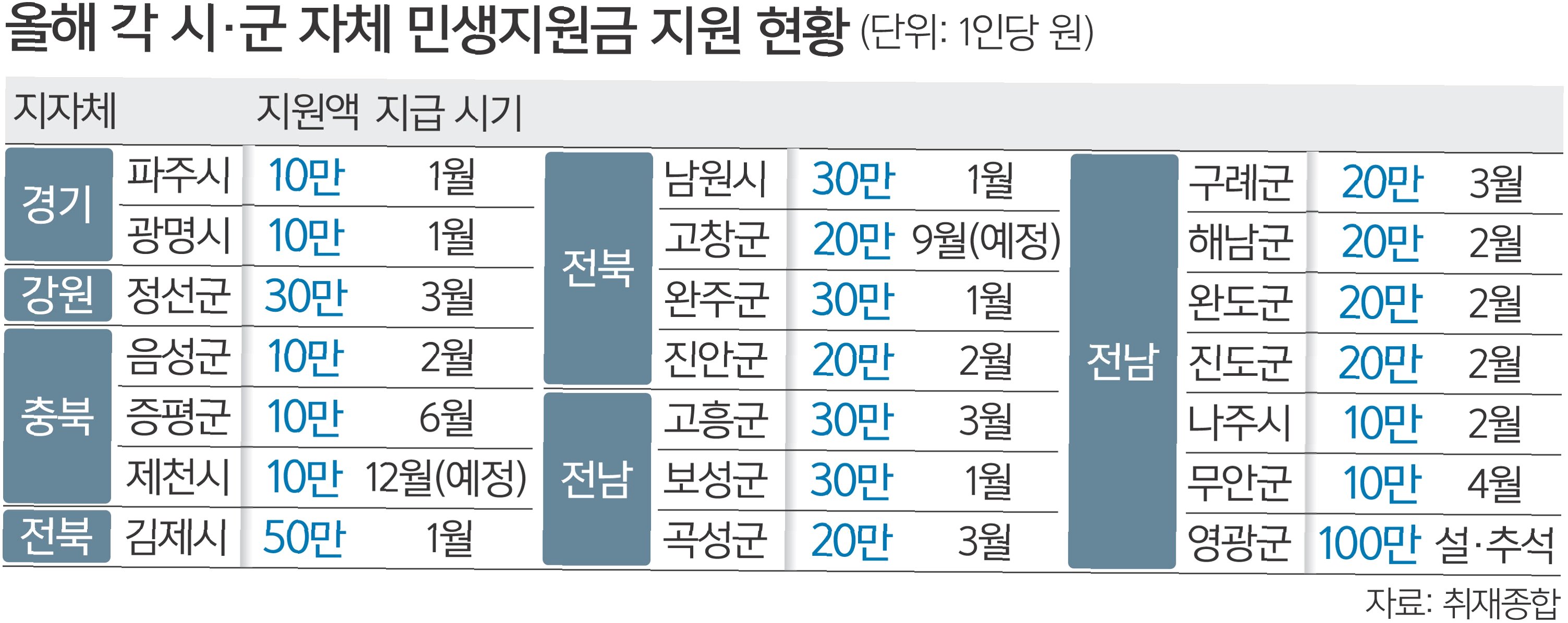 남원시와 임실군의 민생지원금 지급 계획