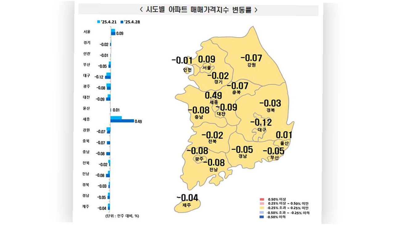 전국적으로는 아파트 가격이 하락세를 보이고 있지만, 서울은 여전히 상승세를 유지하고 있습니다. 서울의 아파트 가격은 0.09% 상승하며 강남3구와 마포, 용산 지역의 상승폭이 두드러졌습니다. 이는 세종과 서울 간의 가격 차별화가 더욱 뚜렷해지는 현상을 나타냅니다.