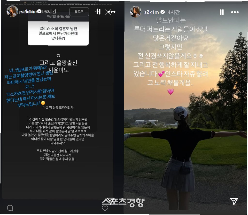 최근 소희는 자신의 사회관계망서비스(SNS)에 법적 조치를 예고하는 글을 올렸다. 그녀는 "말도 안 되는 소리라 무시하고 신경 끌려고 했는데 유언비어가 너무 선을 넘어서 법적 조치하겠다"며, 강한 의지를 드러냈다. 걸그룹 ‘앨리스’ 출신 소희는 배우 겸 사업가 지윤미와 함께 루머에 대해 강경 대응을 예고했다. 소희는 "남편이랑 같이 끝까지 선처 없이 간다. 경찰서에서 뵙겠다"고 경고하며, 루머를 퍼뜨린 인물의 실명을 언급했다. 이러한 상황은 예능 프로그램 ‘얼짱시대’ 출신인 지윤미가 누리꾼의 질문을 통해 시작되었다.