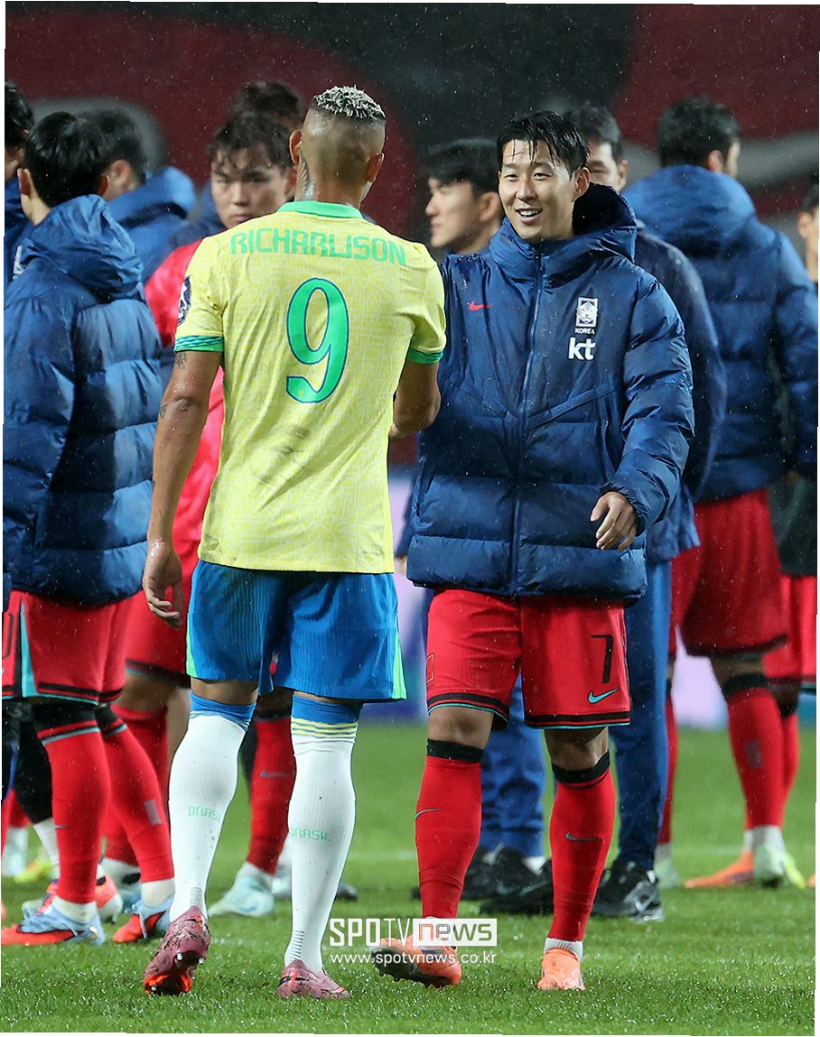 경기가 끝난 후, 손흥민은 브라질 선수단 쪽으로 다가가 히샬리송을 발견하고 뜨거운 포옹을 나눴습니다. 두 선수의 우정을 확인한 팬들은 훈훈한 분위기에 미소를 지으며 이 순간을 함께했습니다.