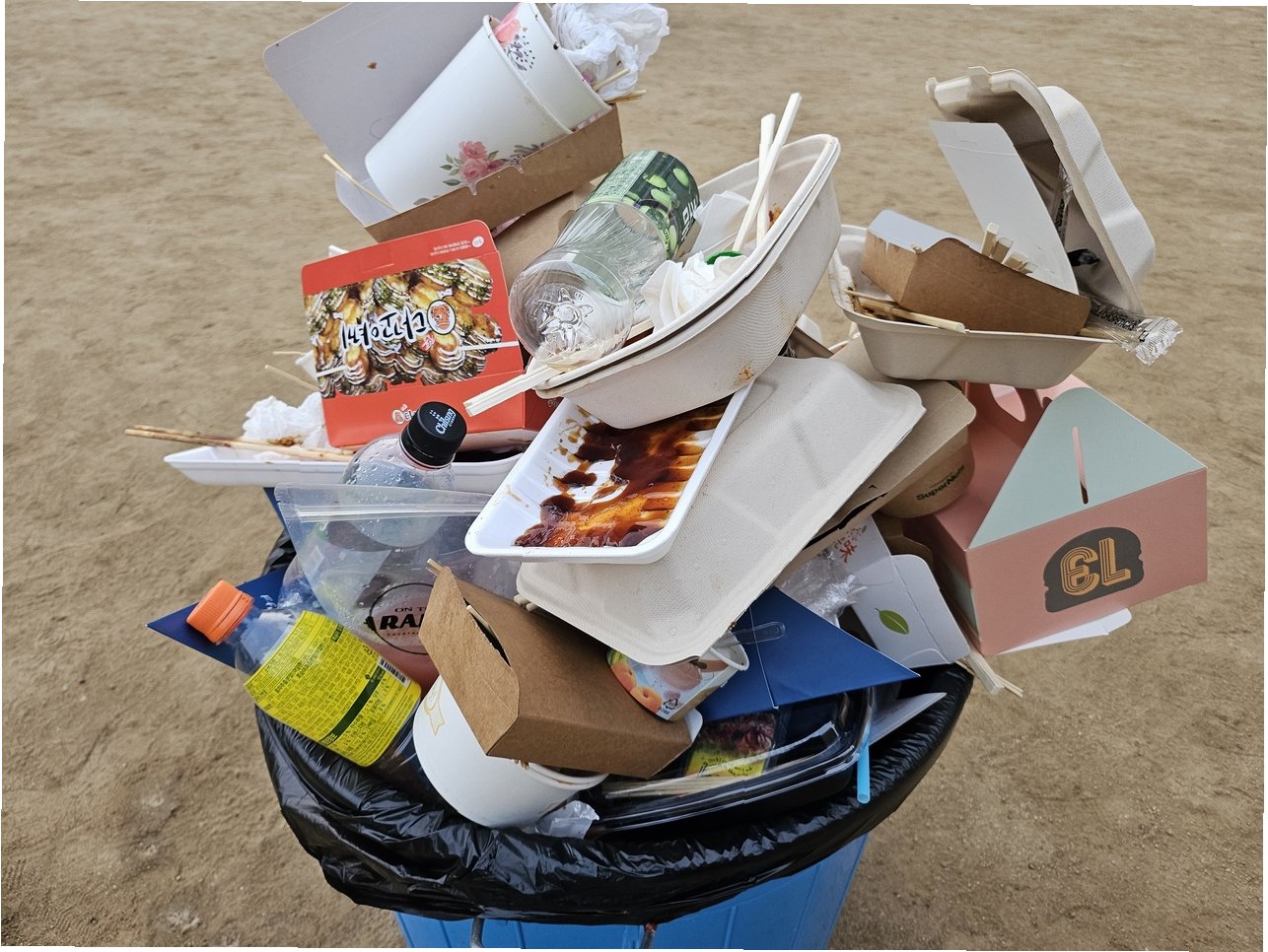 최근 서울의 한 대학교에서 열린 축제 현장에서 일회용 쓰레기가 쌓여가는 모습이 포착되었습니다. 축제를 즐기는 학생들 뒤로, 큰 쓰레기통은 음식물 쓰레기로 가득 차 있었습니다. 많은 학생들이 일회용 컵과 접시를 사용하고 있었으며, 분리수거는 제대로 이루어지지 않았습니다. 환경단체 녹색연합의 조사에 따르면, 10명 중 8명이 축제 쓰레기 문제가 심각하다고 응답했으며, 특히 92%가 일회용 쓰레기 배출의 비중을 지적했습니다. 이는 다회용기 사용이 부족한 현실을 보여줍니다.