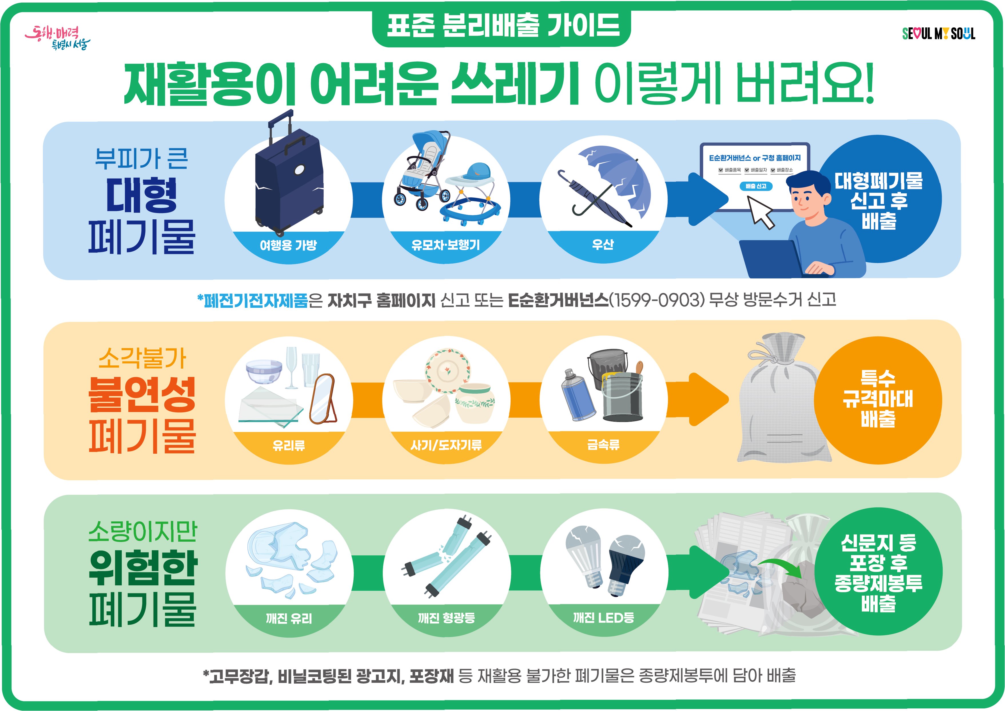 A.생활폐기물 분리배출 공식 홈페이지(분리배출.kr)에서 거주 지역별 분리배출 규정을 확인할 수 있습니다. 정부에서 제공하는 정확한 정보를 참고하세요.