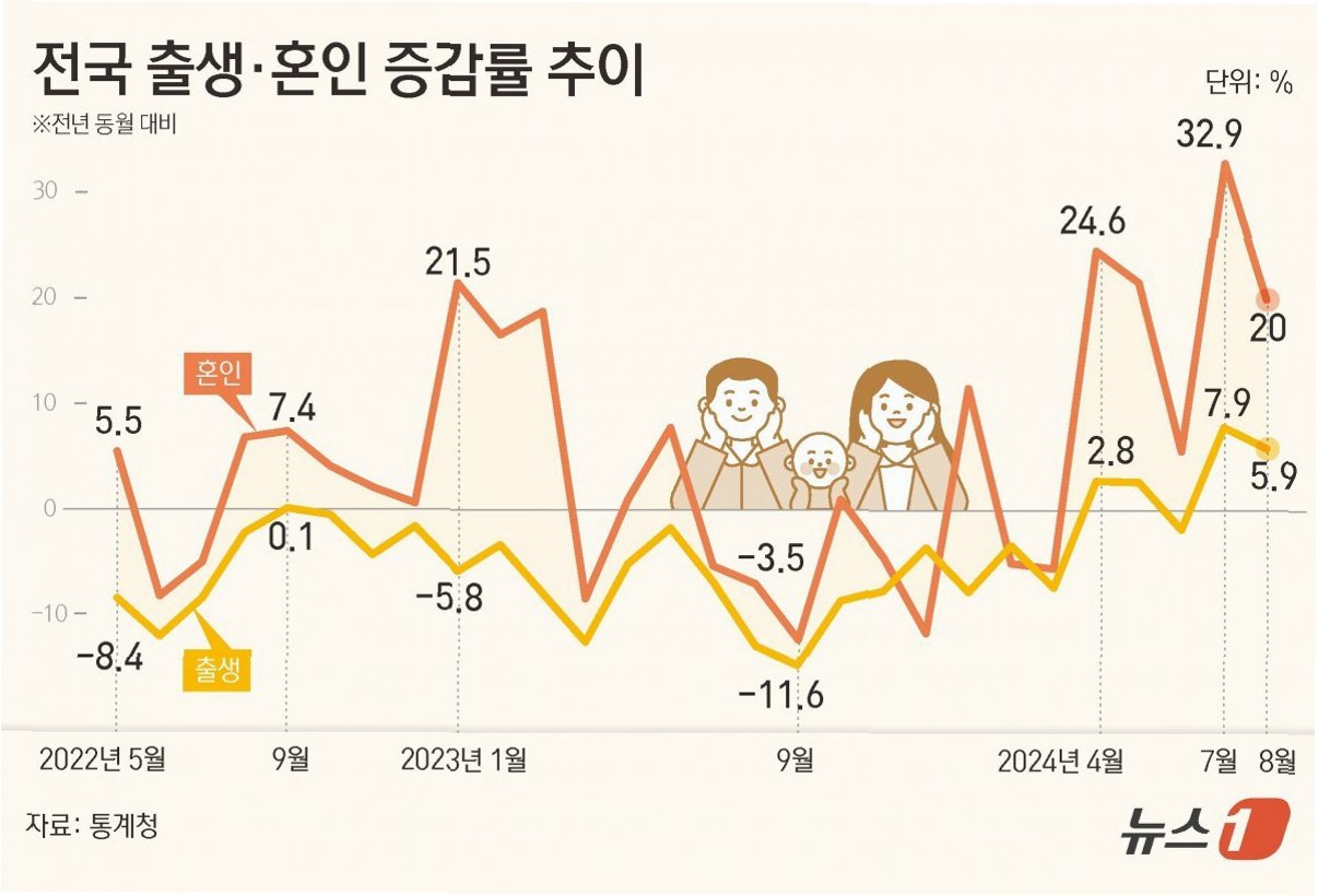 올해 1분기 출생아 수가 6만 5022명으로 3년 만에 최대를 기록했고, 출생아 수 증가율도 7.4%로 분기 기준 역대 최대 증가 폭을 보였습니다. 1분기 혼인 건수 역시 6년 만에 최대를 기록하며, 올해 출생아 수 증가에 대한 기대감을 높이고 있습니다. 35~39세 여성의 출산율이 가장 큰 폭으로 증가했다는 점도 긍정적인 신호입니다. 이러한 긍정적인 변화들이 지속되어, 더 많은 아기들의 울음소리가 세상에 울려 퍼지기를 기대합니다.