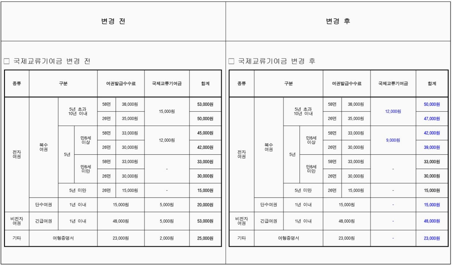 인상되는 여권 발급 수수료 상세 안내