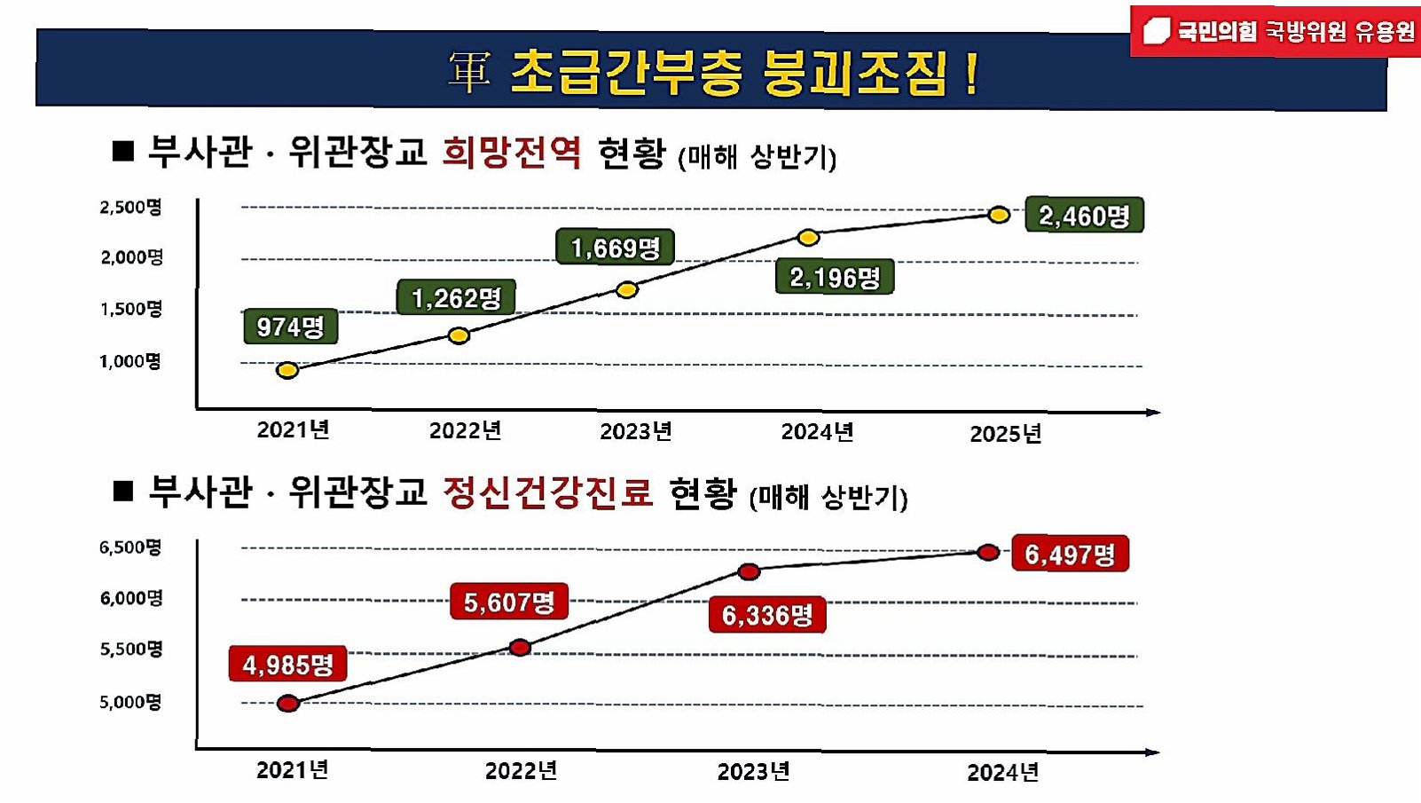 A.유용원 의원은 초급 간부들의 생활실태, 근무환경, 정신건강 관리체계를 전면 재점검하고, 특별 TF 구성을 통한 종합 대책 마련을 촉구했습니다.