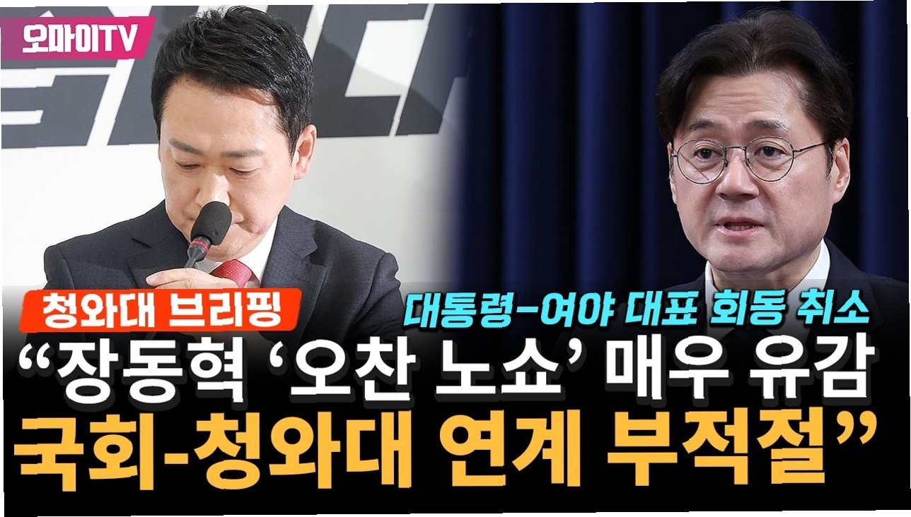 대통령과 여야 대표가 함께하는 오찬 회동이 국민의힘 장동혁 대표의 갑작스러운 불참 통보로 무산되었습니다. 홍익표 청와대 정무수석은 오찬 약 1시간 전에 불참 의사를 전달받았다고 밝혔습니다. 이는 정치권에 큰 파장을 일으켰습니다.