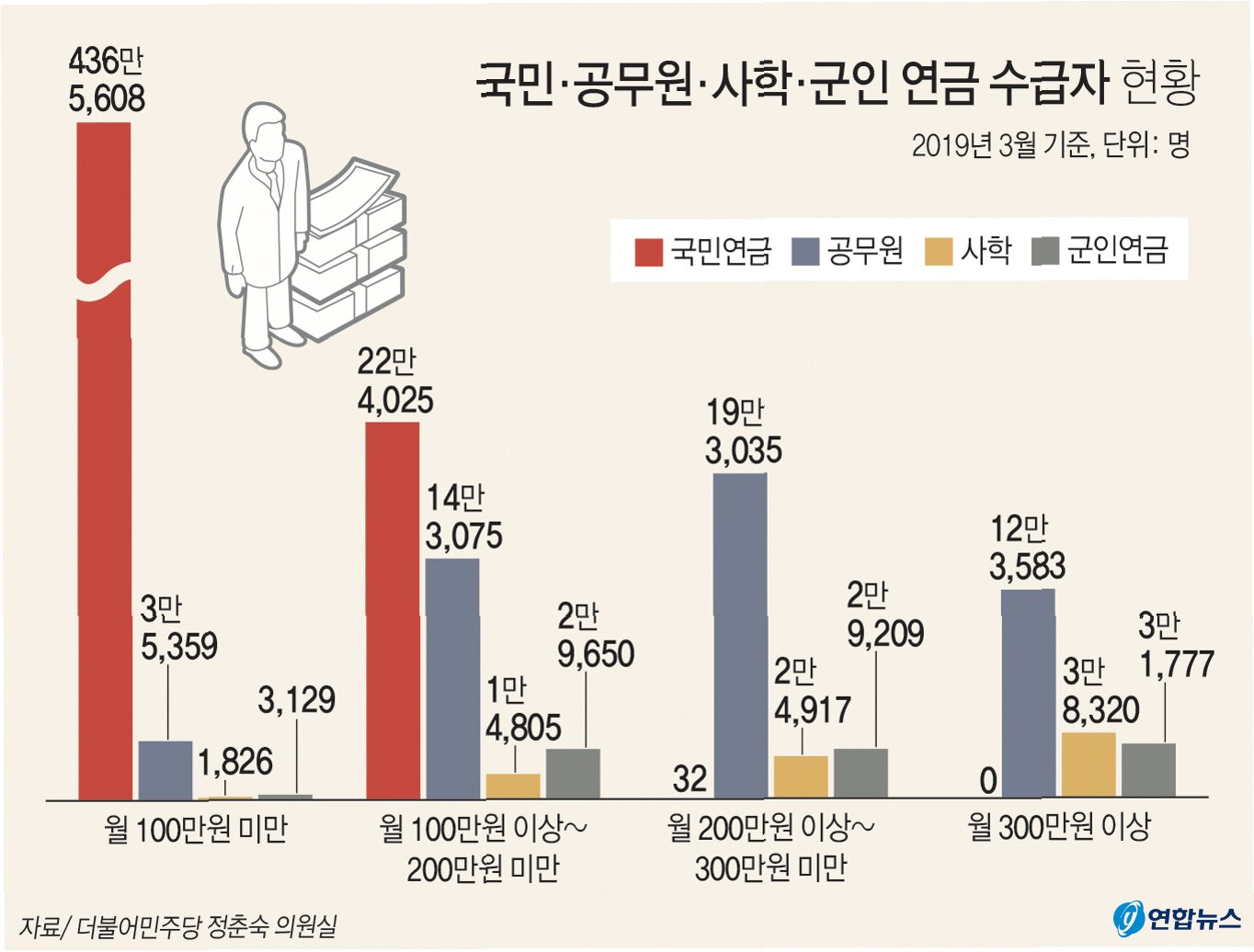 지난해 12월 기준 국민연금 수급자 705만 명의 월평균 수령액이 65만원이었던 것을 감안하면 이 수급자는 상대적으로 안전한 노후소득보장을 이룬 것입니다.