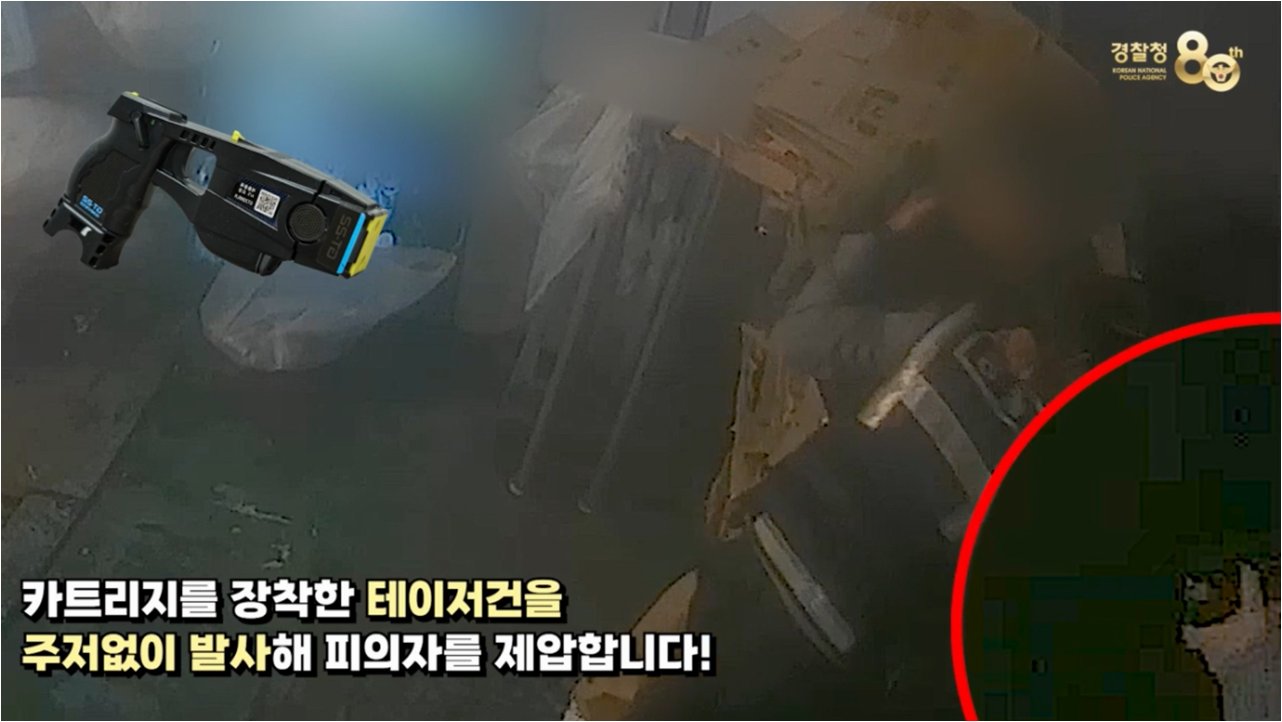 A.경찰은 A 씨의 폭력적인 행동에 대해 정당하게 대응하기 위해 테이저건을 사용했습니다.