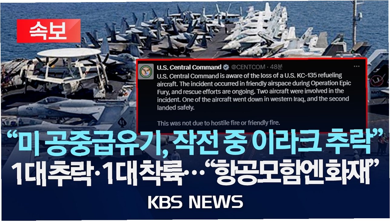 미군 중부사령부는 지난 10일 대이란 군사작전 수행 중이던 미군 KC-135 공중급유기 1대가 이라크 서부 상공에서 추락했다고 밝혔습니다. 이번 사고는 '장대한 분노' 작전 중 우호 공역에서 발생했으며, 현재 구조 작업이 진행 중입니다. 사고 항공기는 2대로, 1대는 이라크 서부에 추락했고 다른 1대는 안전하게 착륙한 것으로 확인되었습니다.