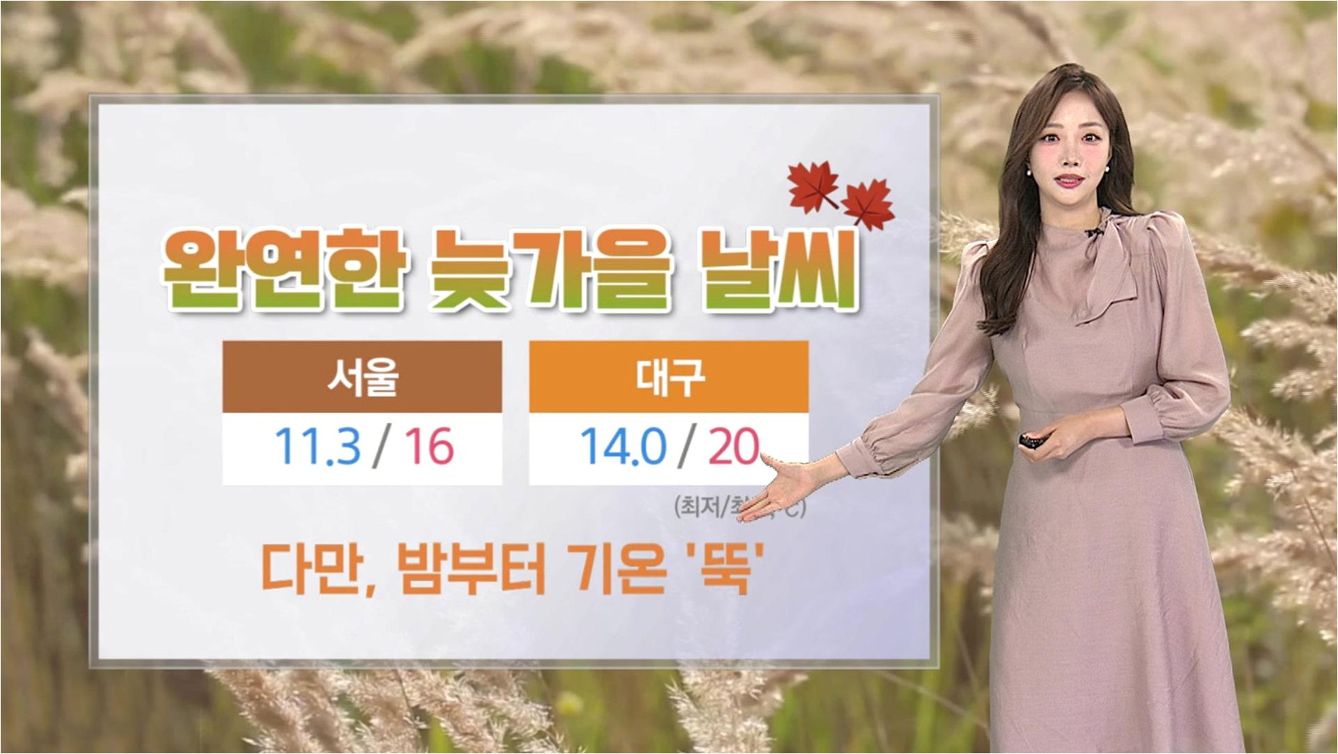 A.이번 추위는 주 중반까지 이어지다가 주 후반에는 찬 공기의 세력이 약해지면서 다시 평년 수준의 가을 날씨를 되찾을 전망입니다.