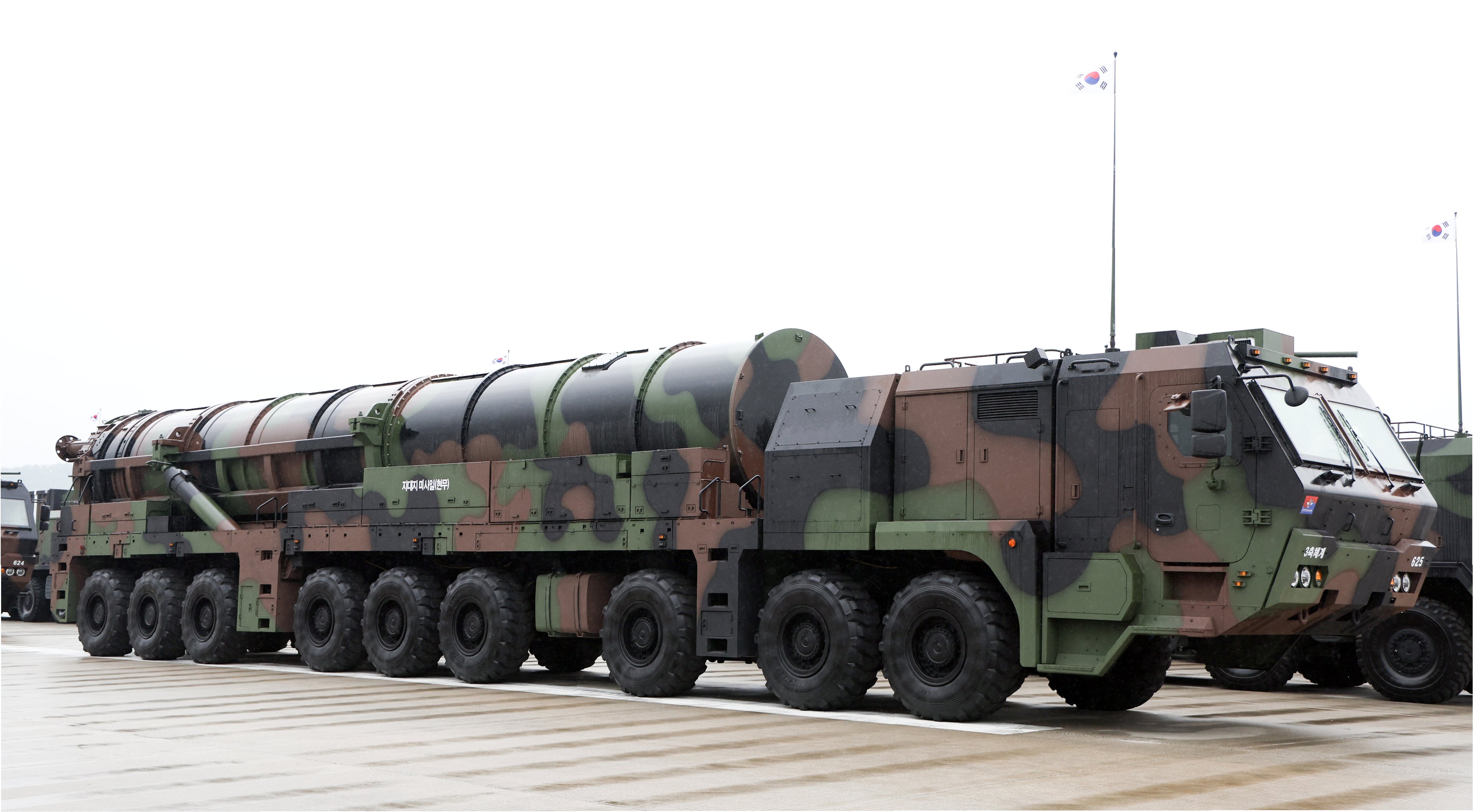 A.현무-5는 9축 18륜 이동식 발사 차량(TEL)에 탑재되어 운용되며, ‘콜드 론치’ 방식을 통해 발사 차량의 안전성을 확보합니다.