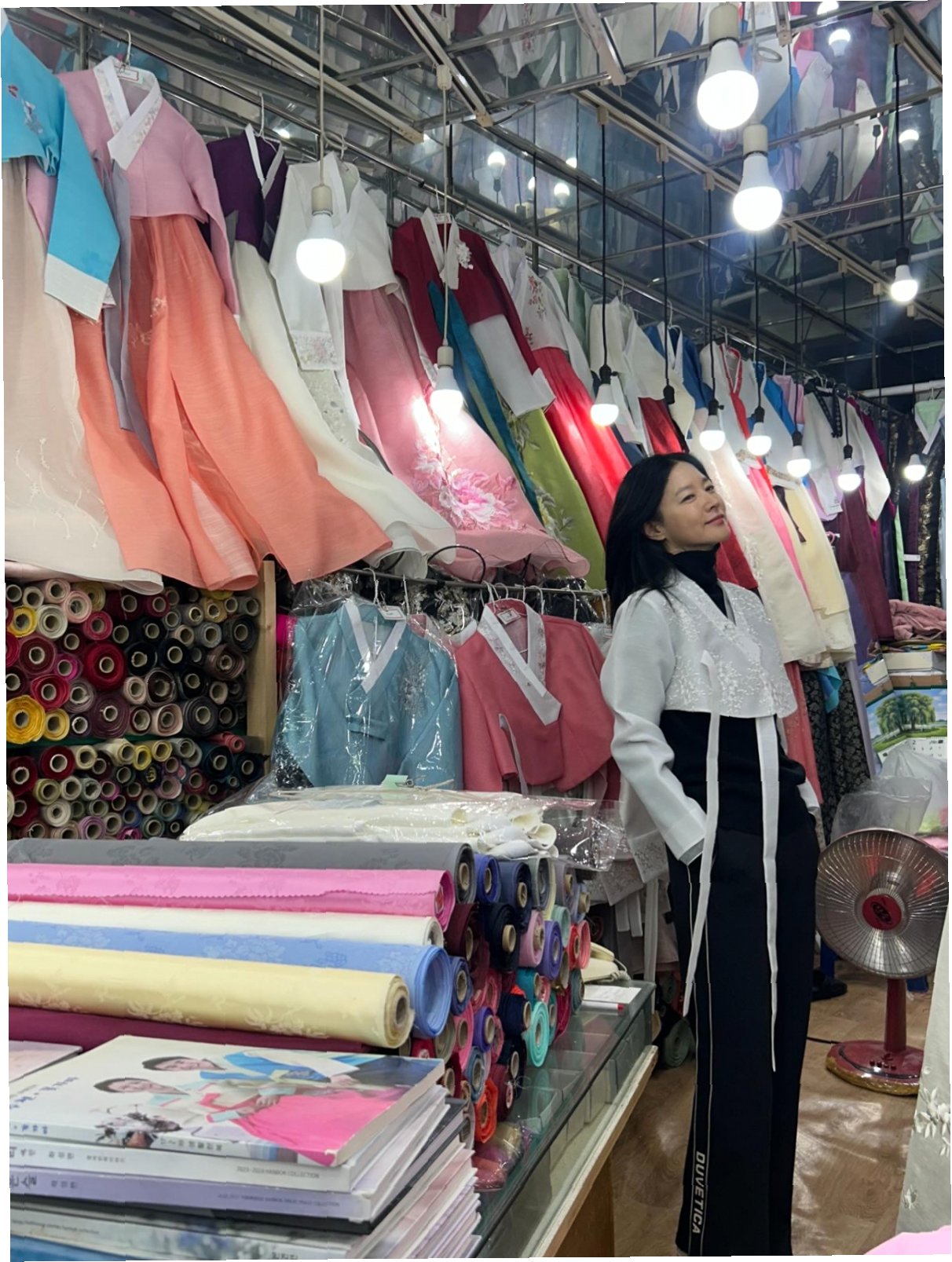 이날 이영애는 화사한 핑크색 패딩에 블랙 터틀넥을 매치한 편안한 차림으로 시장 곳곳을 누볐습니다. 광장시장의 명물인 손칼국수와 비빔밥을 맛있게 먹는 모습, 종이컵에 담긴 호떡을 손에 들고 길거리 음식을 즐기는 모습 등 소탈한 매력을 가감 없이 드러냈습니다. 특히 시장을 구경하며 갓을 써보거나 화려한 꽃무늬 누빔 조끼를 직접 착용해보는 등 장난기 가득한 모습으로 반전 매력을 선사하기도 했습니다. 수산물 상점에서는 생선을 꼼꼼히 살피며 직접 장을 보는 등 주부 9단다운 면모도 보였습니다.