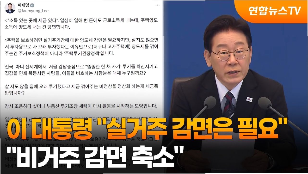이재명 대통령은 실거주 1주택자에 대한 양도세 장기보유특별공제 혜택은 유지하되, 비거주 투기 목적의 보유에 대해서는 감면 혜택을 축소해야 한다는 입장을 분명히 했습니다. 부동산 투기 세력의 재활동을 경고하며, 정치적 공세에 대한 비판도 덧붙였습니다.