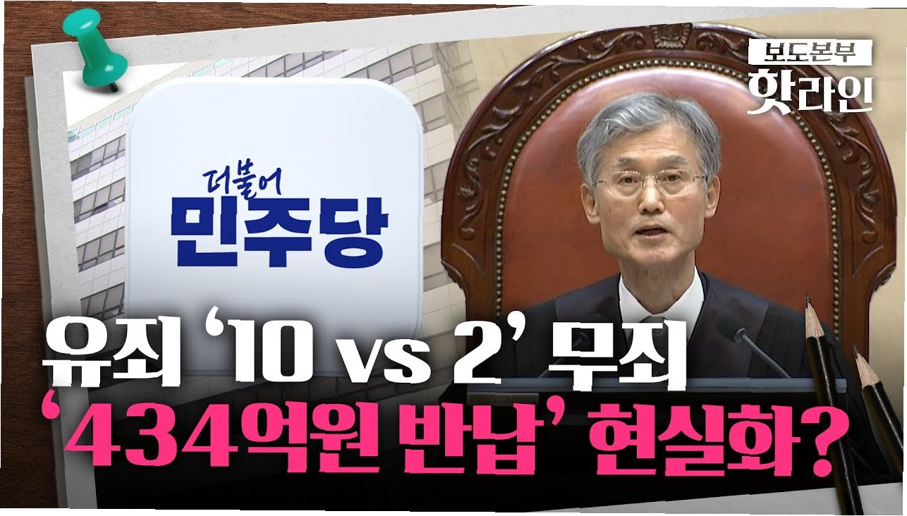 윤기찬 국민의힘 법률위 부위원장은 대법원의 파기환송 결정에 대해 법조계에서 예상했던 결과라고 평가했습니다. 이재명 후보가 100만원 이상의 벌금형을 받을 경우 피선거권이 박탈되고, 그로 인해 민주당은 434억원을 반환해야 하는 상황에 직면할 수 있습니다. 윤 부위원장은 '항소심에서 100만원 미만의 형을 선고할 가능성은 있지만, 1심에서의 징역형이 그대로 유지될 가능성이 크다'고 진단했습니다.