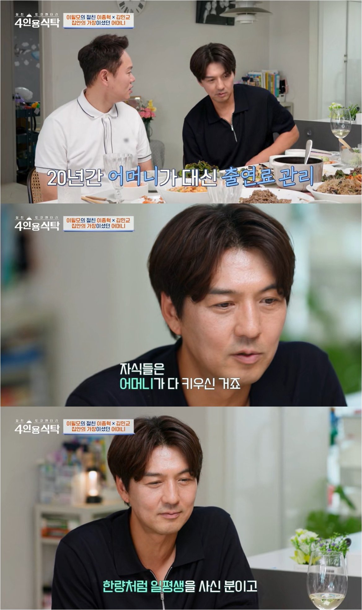 배우 이필모가 채널A '4인용 식탁'에서 데뷔 27년 차 배우로서의 일상과 세상을 떠난 어머니에 대한 깊은 그리움을 전했습니다. 그는 동료 배우들과의 만남을 통해 잊을 수 없는 가족에 대한 이야기를 진솔하게 풀어냈습니다.