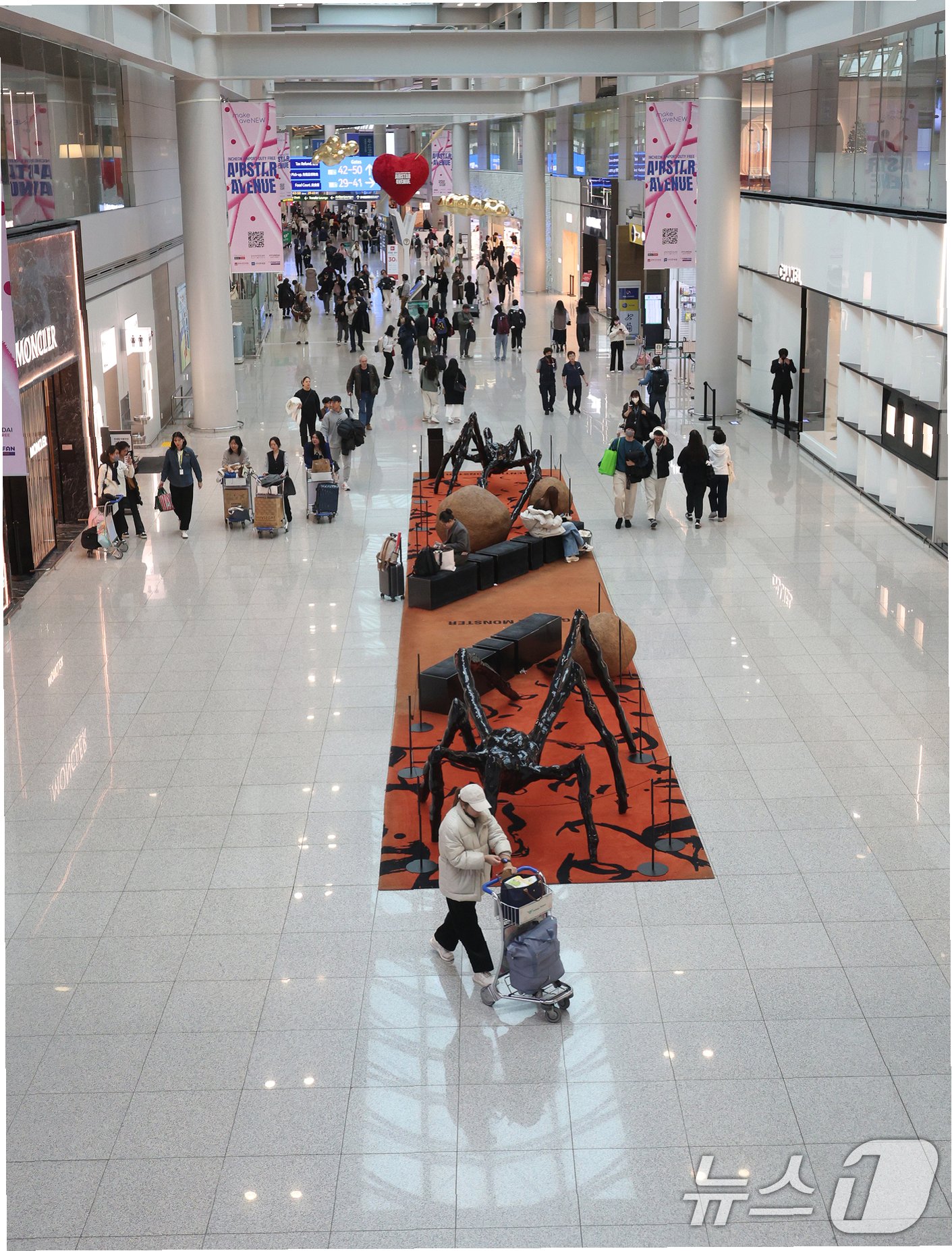 지난 20일, 인천국제공항 제1여객터미널 면세 구역은 북적이는 인파와는 대조적으로 한산한 모습이었다면세점 쇼핑백을 든 사람은 드물었고, 대신 가족, 연인 단위의 여행객들은 대기 의자에 앉아 담소를 나누거나 식음료 매장에 머물렀다. 명품 매장에는 손님이 없었고, 담배, 주류, 화장품 매장 역시 한산했다. 1+1 행사에도 구매를 망설이는 모습이었다.