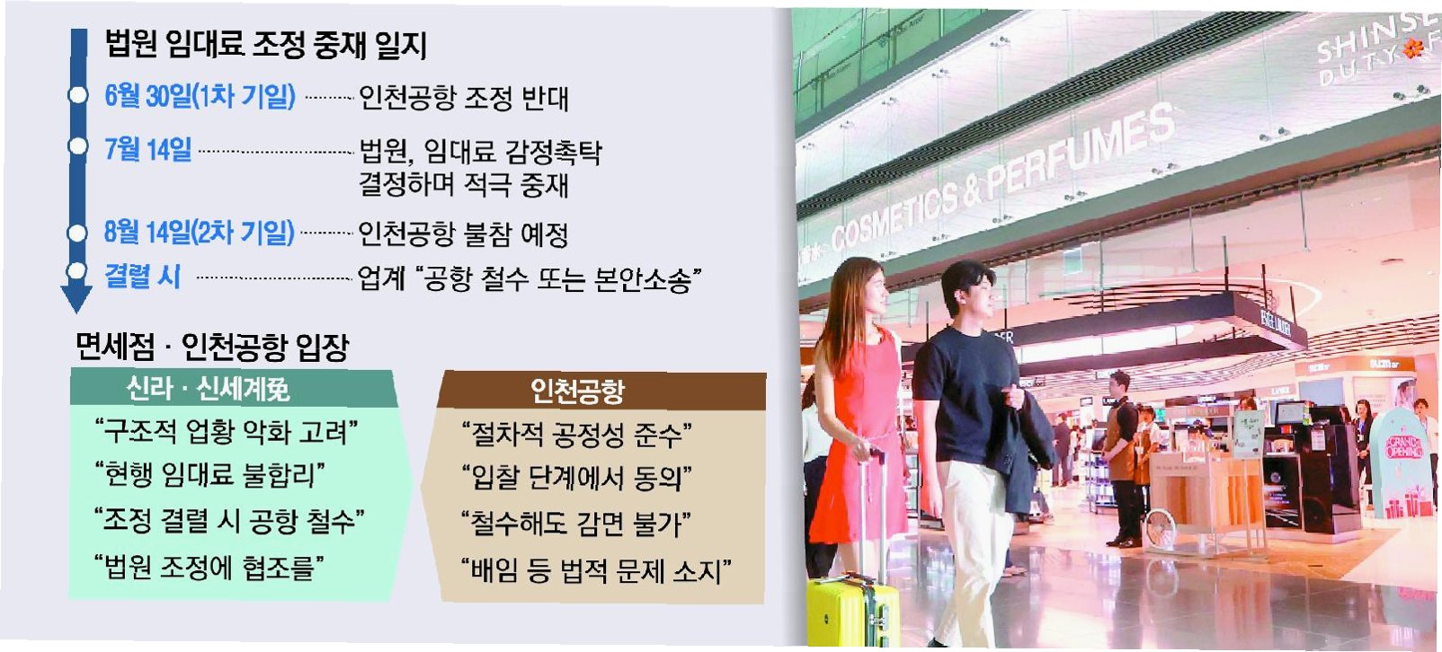 면세업계 관계자는 “온라인 면세점을 이용하는 사람이 늘면서 면세점을 둘러보기 위해 이른 시간대에 입국 수속을 밟던 문화도 많이 사라졌다”면서 “사업자들의 시장 정상화를 위한 자체 노력과 함께 동반자인 인천공항 지원도 필요하다”고 강조했다. 임대료 감면을 요구하는 면세점과 이를 거부하는 인천공항공사 간의 갈등은 해결해야 할 과제다.