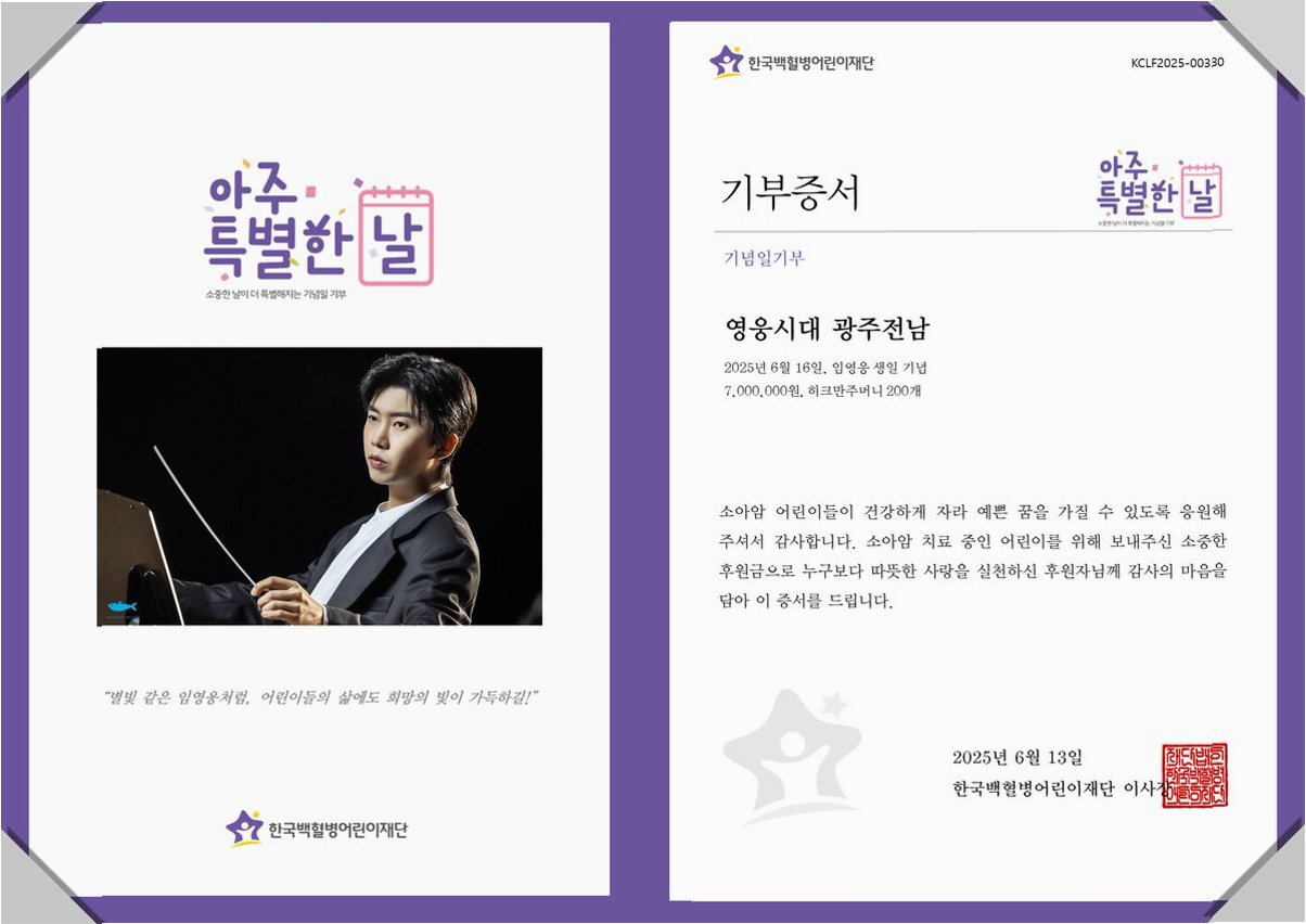 임영웅, 따뜻한 마음으로 소아암 환아에게 희망을 선물하다