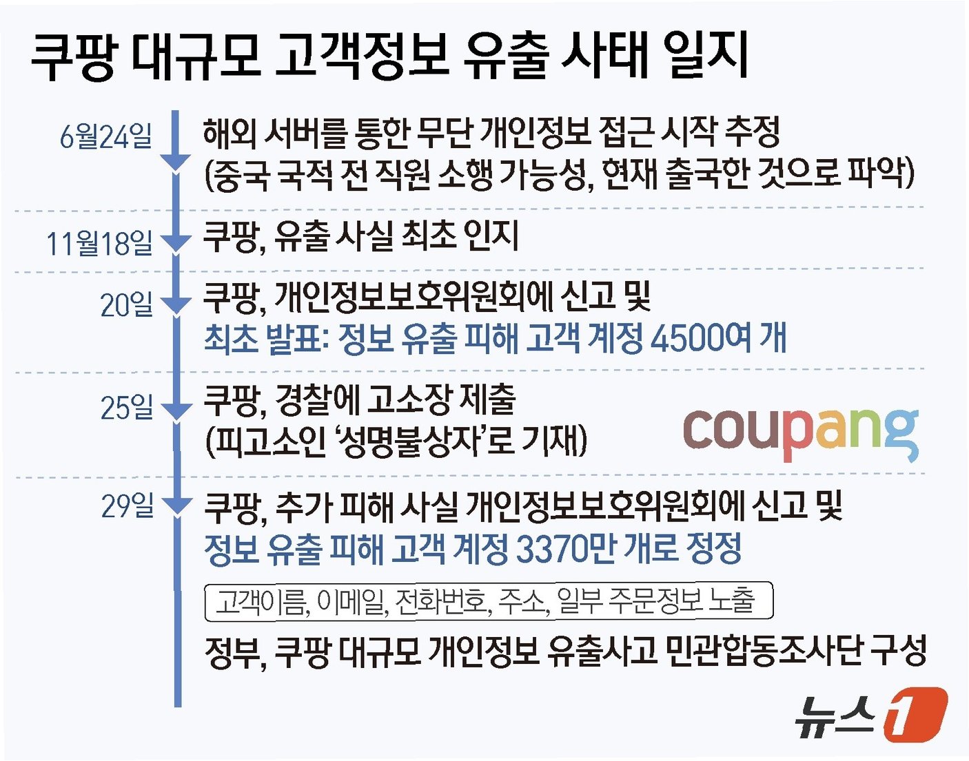 정부는 쿠팡의 미온적인 태도를 좌시하지 않고 법적으로 가능한 모든 방안을 강구해 조치하겠다고 밝혔다과학기술정보통신부는 쿠팡이 자료 보전 명령을 위반한 데 대해 경찰에 즉시 수사 의뢰할 예정이다. 특히, 쿠팡이 개인정보 유출 이후 자료 보전 요구에도 불구하고 5개월 분량의 홈페이지 접속 로그를 삭제하도록 방치한 사실이 확인되었다.