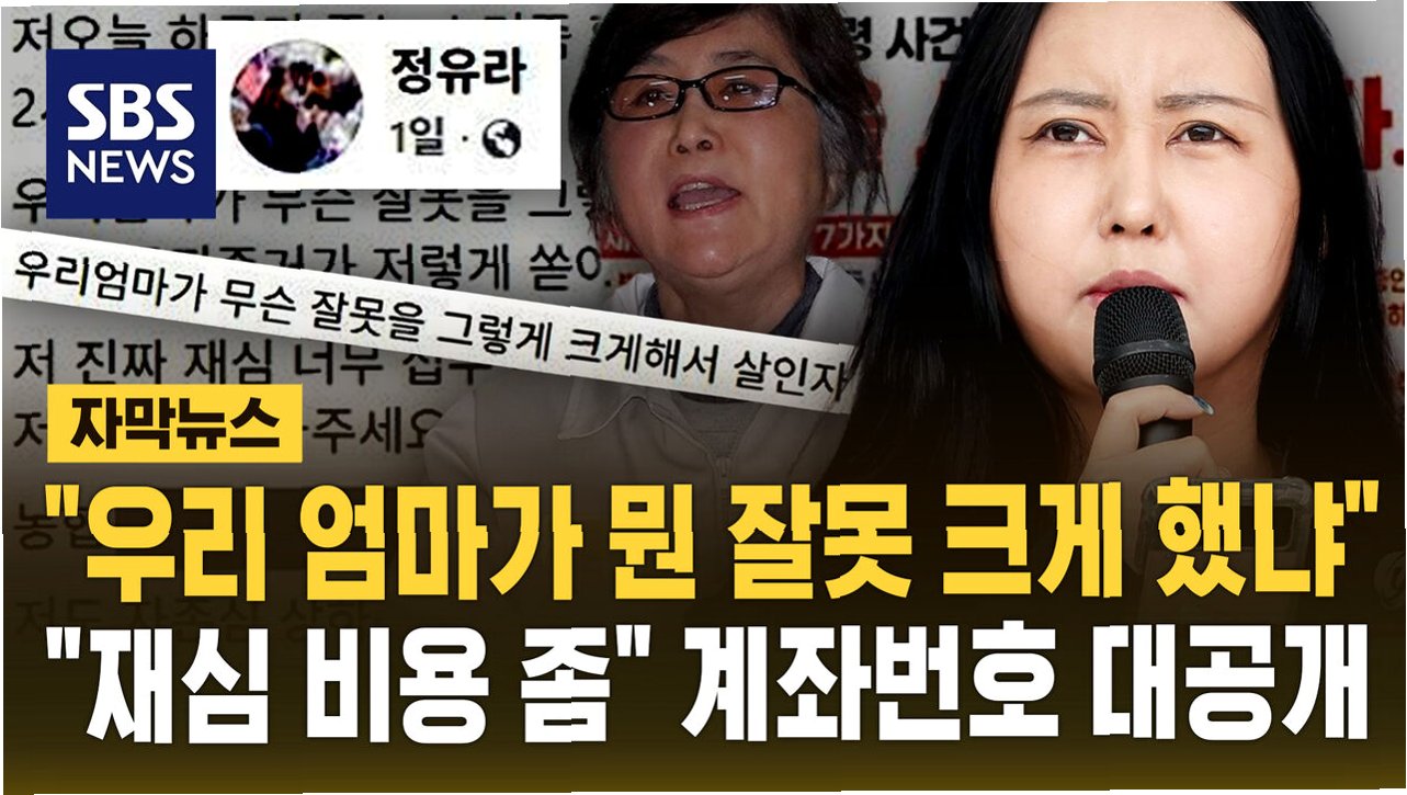 최서원 씨의 딸 정유라 씨가 최근 자신의 SNS를 통해 어머니의 재심을 위한 자금 부족을 호소하며, 도움을 요청했습니다정 씨는 재심 준비는 모두 끝났지만 변호사 비용을 전액 지불하지 못해 접수를 하지 못하고 있다고 밝혔습니다. 어머니의 건강 상태를 언급하며, 살인자보다 더 오래 갇혀 있어야 할 만큼 큰 잘못을 했는지 의문을 제기했습니다. 정 씨는 자녀 명의의 계좌번호를 공개하며 후원을 요청했고, 사건의 방대함으로 인해 변호사 비용 부담이 커 재심 접수 후 미국 인권기구 제소도 추진할 계획임을 밝혔습니다.