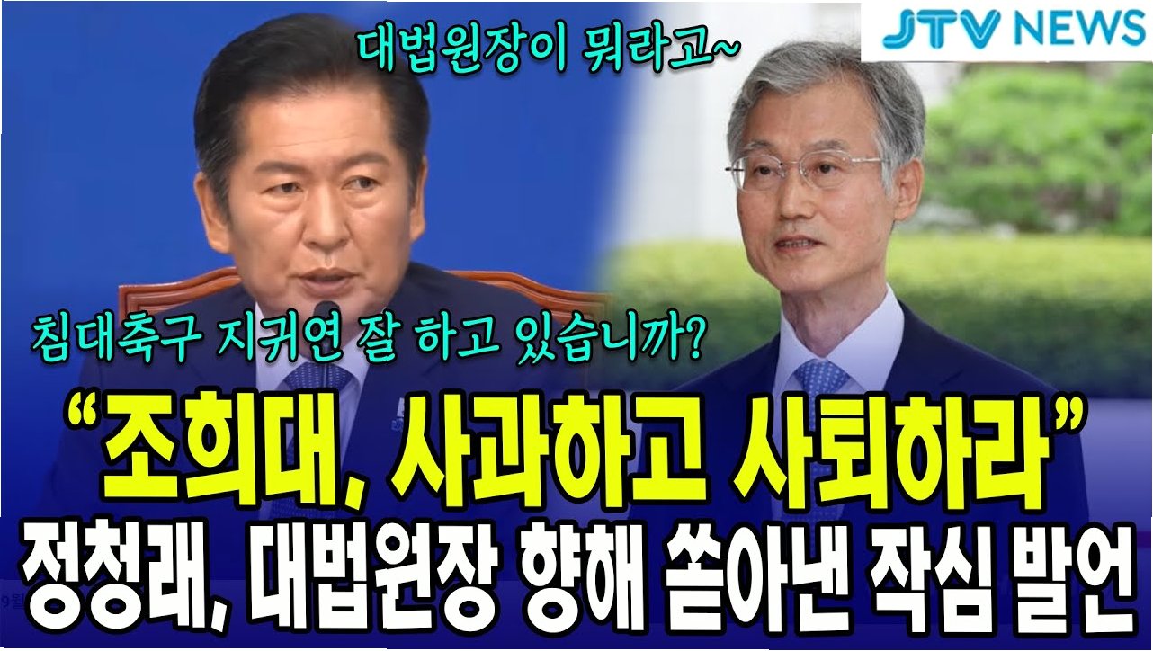 정청래 의원이 조희대 대법원장의 사퇴를 강력하게 촉구하며, 국민의힘의 통일교 연루 의혹에 대한 진실 규명과 책임을 강조했습니다. 사법 불신과 정당 해산 가능성을 언급하며, 정치적 파장이 예상됩니다.