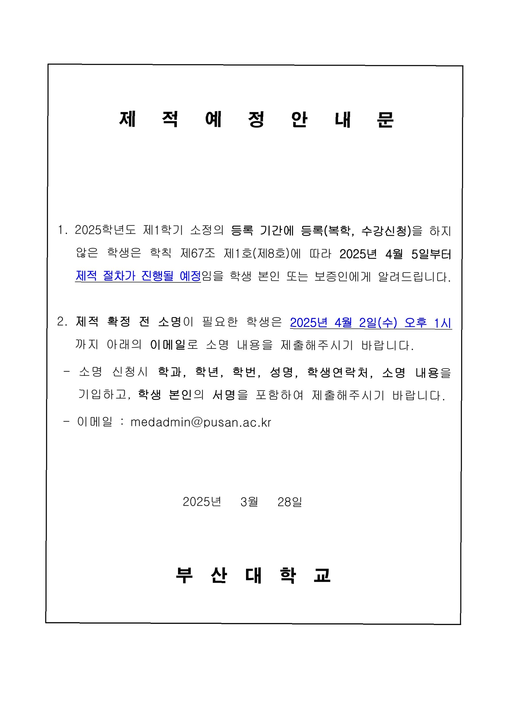 Q.무단결석으로 제적 예정인 경우 어떻게 해야 하나요?